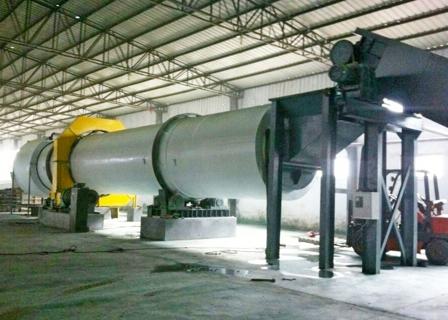 設備的安裝略帶有傾斜角,進料口高,出料口低,隨著滾筒轉動物料混合液也慢慢向出料端移動,這之間可以停留8-20分鐘給物料的浸泡提供足夠的時間。出料口配有一段濾水篩鼓,原料再經過這里時把水和泥沙漏掉,通過自然脫水后的物料在導料螺旋片的推送下送出設備,完成洗滌浸泡過程。出料口配上傳送帶將物料送至反應倉熟化。
